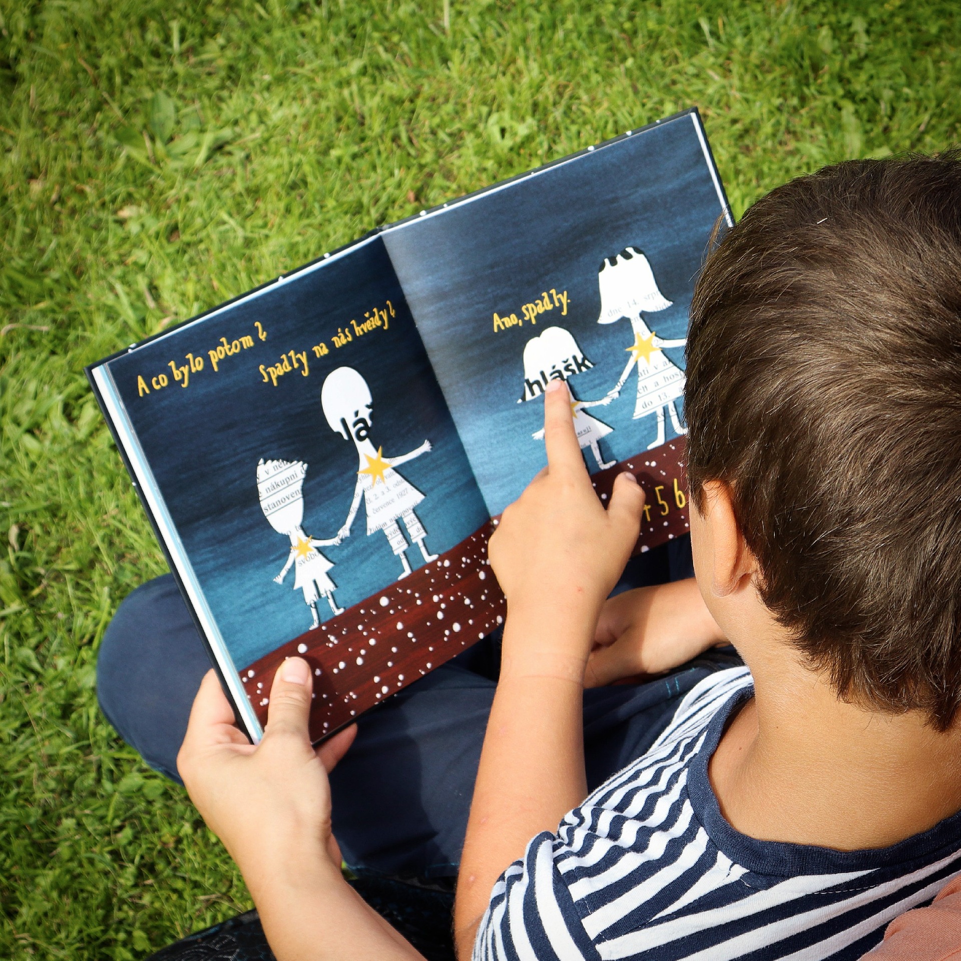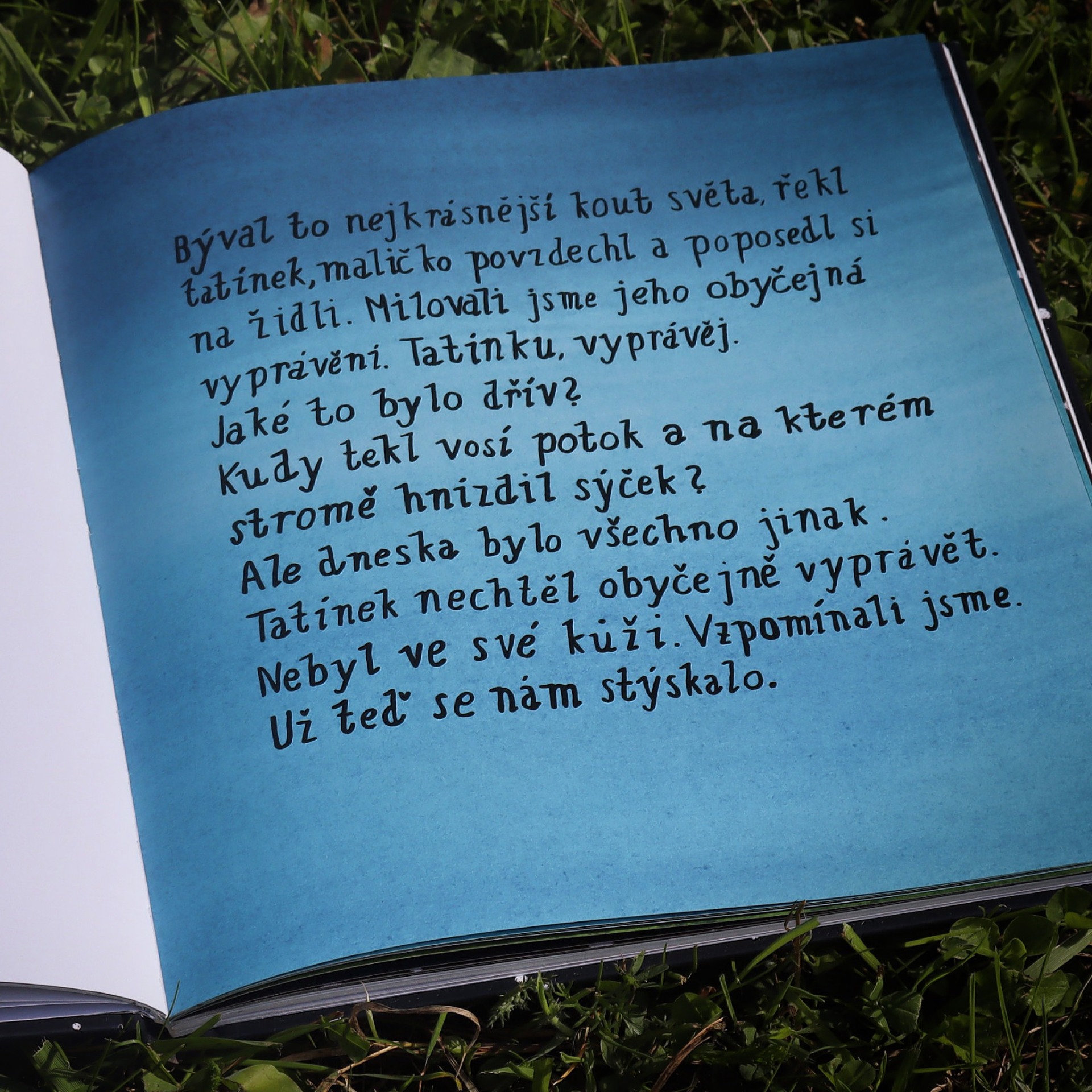 Knížku jsme společně vytvořili s mým osmiletým synem, který se podílel na části ilustrací a navíc vytvořil originální vlastnoruční font.